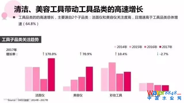 根據(jù)捷登設(shè)計(jì)近日發(fā)布的《2018年化妝品行業(yè)報(bào)告》數(shù)據(jù)顯示,潔面儀與美容儀市場(chǎng)火爆,增速明顯,其中潔面儀2017年增速達(dá)170%,美容儀增速達(dá)70.9%。而這一趨勢(shì)顯然在CBE現(xiàn)場(chǎng)也得到了印證。集中于E4館展示的家用儀器產(chǎn)品越來(lái)越多,參展企業(yè)同比實(shí)現(xiàn)翻倍增長(zhǎng)。