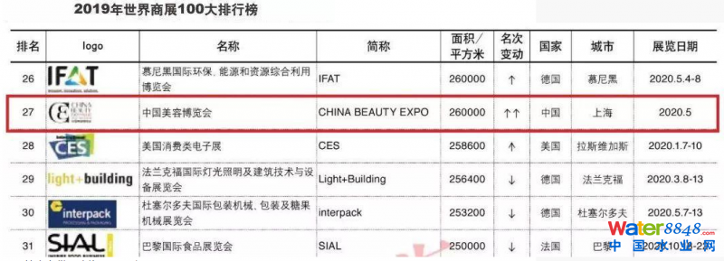 在今年公布的《2019年世界商展百大排行榜》上,中國美容博覽會再次登榜,并連續(xù)3年保持******美容展的殊榮。