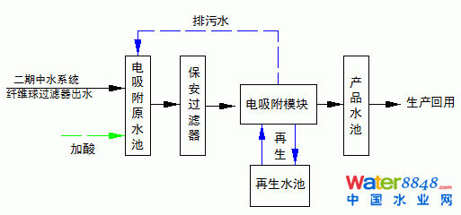 設(shè)計(jì)水源:公司水廠回用水工程出水或城市污水處理廠二級處理出水(GB18918-2002一級標(biāo)準(zhǔn));