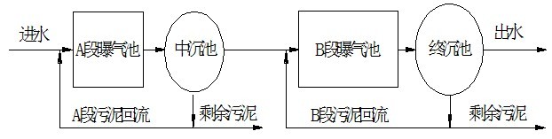 A-B法是吸附—生物降解法(Adsorption Bio-degradation)的簡稱,是德國亞琛大學(xué)Bbohnke教授于二十世紀(jì)七十年代中期開發(fā)的一種工藝,其生物反應(yīng)池由A段和B段二級活性污泥系統(tǒng)串聯(lián)而成,A段和B段分別具有獨(dú)立的污泥回流系統(tǒng)。該工藝不設(shè)初沉池,但其A段對SS及BOD的去除率大大高于初沉池。A段負(fù)荷高,曝氣時(shí)間短,維持在極高的負(fù)荷下運(yùn)行,使微生物處于快速增長期以發(fā)揮其對有機(jī)物的快速吸附作用;B段維持在較低的負(fù)荷下運(yùn)行,利用長世代期微生物的作用,保持出水水質(zhì)。