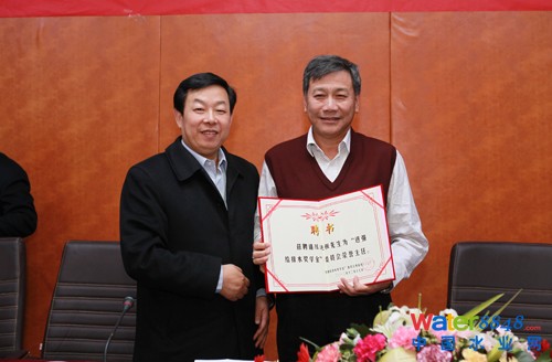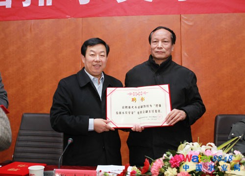 與會領(lǐng)導(dǎo)為“進強給排水獎學(xué)金”第一屆委員會委員頒發(fā)了聘書。師生代表也在會上作了表態(tài)發(fā)言。