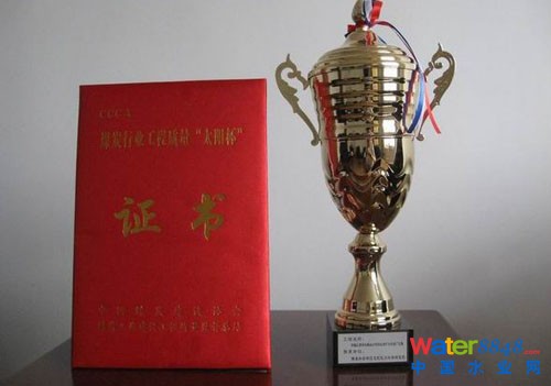 由我院水處理所設(shè)計的“華能扎萊諾爾煤業(yè)公司鐵北煤礦水處理廠工程”榮獲煤炭行業(yè)工程質(zhì)量“太陽杯”獎。“太陽杯”工程是煤炭行業(yè)優(yōu)質(zhì)工程中優(yōu)中選優(yōu)的工程,是煤炭行業(yè)建設(shè)工程質(zhì)量最高獎。該礦井水處理廠設(shè)計處理規(guī)模38000t/d,設(shè)計處理后的礦井水主要作為煤化工用水和達標(biāo)外排。鐵北煤礦位于滿州里中俄邊境附近,該工程項目的實施,實現(xiàn)了礦井水資源再生利用,節(jié)能減排,保護了礦區(qū)自然環(huán)境,提升了我國煤炭企業(yè)在國際上的形象,經(jīng)濟、環(huán)境和社會效益顯著。