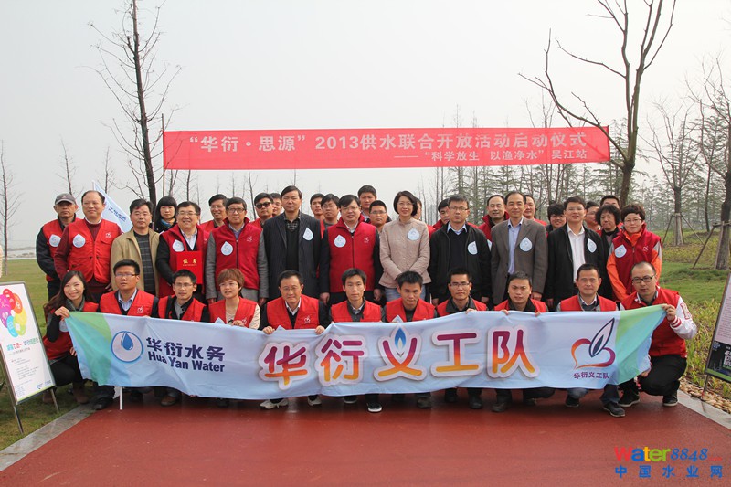 3月22日是“世界水日”,華衍水務(wù)集團(tuán)結(jié)合“保護(hù)和改善環(huán)境”的企業(yè)使命,于今日(22日)在蘇州市吳江區(qū)太湖邊舉行“華衍思源”2013供水聯(lián)合開放活動啟動儀式。此次啟動儀式,吳江華衍水務(wù)、蘇州工業(yè)園區(qū)清源華衍水務(wù)、蕪湖華衍水務(wù)(在安徽。┓謩e在當(dāng)?shù)亻_展“科學(xué)放魚、增殖養(yǎng)流及戶外行走、減霾行動”、“一滴水的旅行”、“水廠公眾開放日”的活動。江蘇省太湖漁管辦、吳江區(qū)委宣傳部、吳江區(qū)住建局、水利局、環(huán)保局等部門領(lǐng)導(dǎo)及社會愛心人士、華衍水務(wù)集團(tuán)高層領(lǐng)導(dǎo)、華衍義工隊等參加了此次活動。