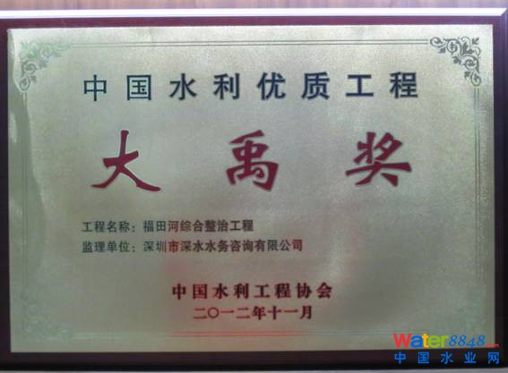在熱情洋溢的氣氛中,矯勇副部長和劉昆副省長為中國水利工程優(yōu)質(zhì)(大禹)獎獎杯舉行了揭幕。之后頒發(fā)了2011~2012年度中國水利工程優(yōu)質(zhì)(大禹)獎獎杯、獎牌和獎章。深圳市深水水務咨詢有限公司監(jiān)理的福田河綜合整治工程項目榮獲“2011~2012年度中國水利工程優(yōu)質(zhì)(大禹)獎”。公司董事長黃瓊、項目總監(jiān)理工程師孫暉出席大會。