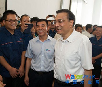 2014年7月 24日李克強(qiáng)總理考察景津環(huán)保,董事長姜桂廷(中)陪同介紹
