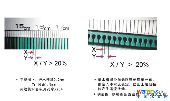 為1mm,而溝槽寬度只有0.3mm,會(huì)產(chǎn)生毛細(xì)現(xiàn)象,迫使水流由下往上自行倒吸進(jìn)入毛細(xì)管內(nèi),而土壤中被水流夾帶之顆