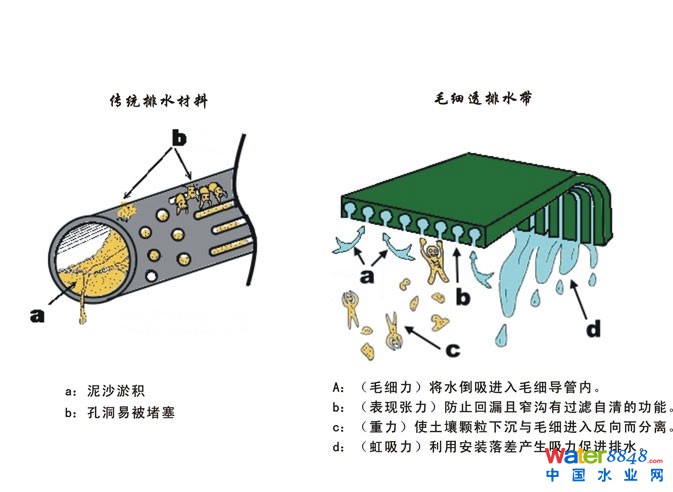 4、主動(dòng)式排水:利用毛細(xì)力、虹吸力增進(jìn)排水效率;