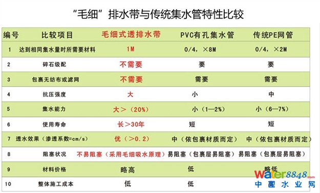 核心提示:毛細(xì)透透排水管、帶與傳統(tǒng)排水產(chǎn)品對比