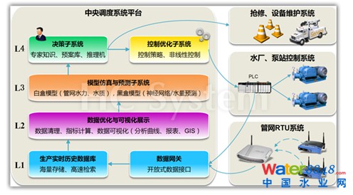 水務(wù)企業(yè)運營管理信息可劃分為5個層次,DataEasy平臺有別于自動控制系統(tǒng)上位機軟件,屬于第4、5層次的運營管理層軟件,處于比SCADA系統(tǒng)更高的層面。DataEasy平臺完善的數(shù)據(jù)采集和分析功能,為水務(wù)企業(yè)生產(chǎn)調(diào)度構(gòu)筑堅實的基礎(chǔ)。高質(zhì)量的數(shù)據(jù)為企業(yè)實施智能化運行提供可靠支持,海量的基礎(chǔ)數(shù)據(jù)更可以支撐未來大規(guī)模的數(shù)據(jù)挖掘和知識發(fā)現(xiàn)。