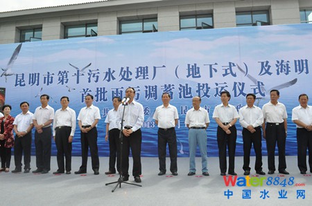 在投運儀式上,滇投公司總經(jīng)理徐增雄介紹了項目的具體情況,昆明市副市長王道興發(fā)表了重要講話,云南省委常委、昆明市委書記張?zhí)镄佬剂死ッ魇械谑鬯幚韽S投入運行。住建部城鎮(zhèn)水務(wù)辦公室主任張悅,中國水協(xié)排水委員會主任楊向平,云南省政府滇池水污染防治專家督導(dǎo)組組長牛紹堯、副組長高曉宇及昆明市長李文榮等參加了通水運行儀式。