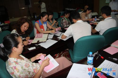 沙龍現(xiàn)場,參會嘉賓正利用行動學習的方法積極參與如何利用聯(lián)合機制建立環(huán)保大學,以及如何進行企業(yè)干部的選拔與培養(yǎng)的話題思考和討論