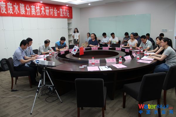 為了更好地幫助我市環(huán)保企業(yè)提高高濃度廢水處理能力,超越現(xiàn)有膜分離技術(shù)局限,同時實現(xiàn)企業(yè)經(jīng)濟利益的進一步提高,7月10日下午,江蘇省(宜興)環(huán)保產(chǎn)業(yè)研究院聯(lián)合韓國富康科技有限公司舉辦的“新一代高濃度廢水膜分離技術(shù)研討會”在研究院六樓會議室舉行。韓國富康科技有限公司膜研究所所長金樟圭、項目主管李龍、研究院執(zhí)行副院長徐榮攜全體工作人員出席了會議。百納、藍星、江華、瑞盛、博大、鼎澤、中冶冶化及無錫國聯(lián)等十二家環(huán)保企業(yè)的相關(guān)負責人也參加了研討會。
