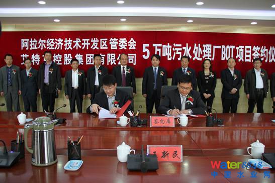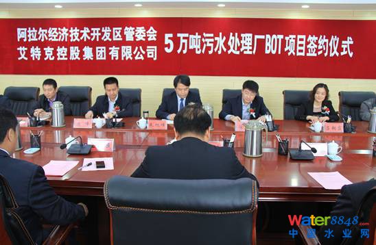 2013年4月3日,隨著艾特克集團公司董事長徐暢和新疆建設(shè)兵團第一師師黨委常委、常務(wù)副市長孫新民在合同書上的簽字落筆。經(jīng)過近一年時間的多輪洽談,艾特克成功簽約阿拉爾工業(yè)園區(qū)污水處理一期工程5萬噸/天BOT項目。繼盱眙BOT項目、晉州BT項目后,阿拉爾項目的簽約,標(biāo)志著艾特克從設(shè)備、工程總承包,又穩(wěn)步深入水務(wù)投資項目,為艾特克的長期發(fā)展奠定了堅實的基礎(chǔ)。