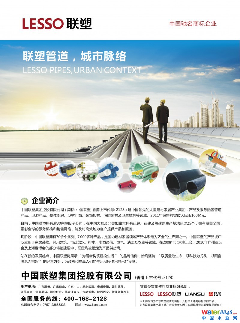 中國聯(lián)塑集團(tuán)控股有限公司(簡稱:中國聯(lián)塑,香港上市公司代號:2128),是中國領(lǐng)先的大型建材家居產(chǎn)業(yè)集團(tuán),產(chǎn)品及服務(wù)涵蓋管道產(chǎn)品、衛(wèi)浴潔具、整體廚房、型材門窗、裝飾板材、消防器材及衛(wèi)生材料等領(lǐng)域,2011年銷售額突破人民幣100億元。