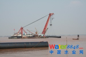 管道沉放現(xiàn)場