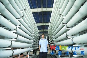 在近千平方米的膜處理車間里,包裹著膜處理設(shè)備的上百根管道縱橫交錯,感覺像是進了一個礦泉水灌裝車間。從“污水處理廠”里流出來的可排放“污水”,在這里就會變成“清泉”。
