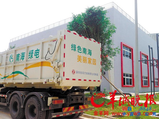 ▲密封的污泥運(yùn)輸車將一車污泥運(yùn)到南海綠電投資建設(shè)的干化處理廠區(qū)