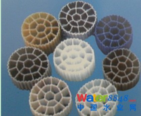 MBBR工藝兼具傳統(tǒng)流化床和生物接觸氧化法兩者的優(yōu)點,是一種新型高效的污水處理方法,依靠曝氣池內(nèi)的曝氣和水流的提升作用使載體處于流化狀態(tài),進而形成懸浮生長的活性污泥和附著生長的生物膜,這就使得移動床生物膜使用了整個反應器空間,充分發(fā)揮附著相和懸浮相生物兩者的優(yōu)越性,使之揚長避短,相互補充。與以往的填料不同的是,懸浮填料能與污水頻繁多次接觸因而被稱為“移動的生物膜”。