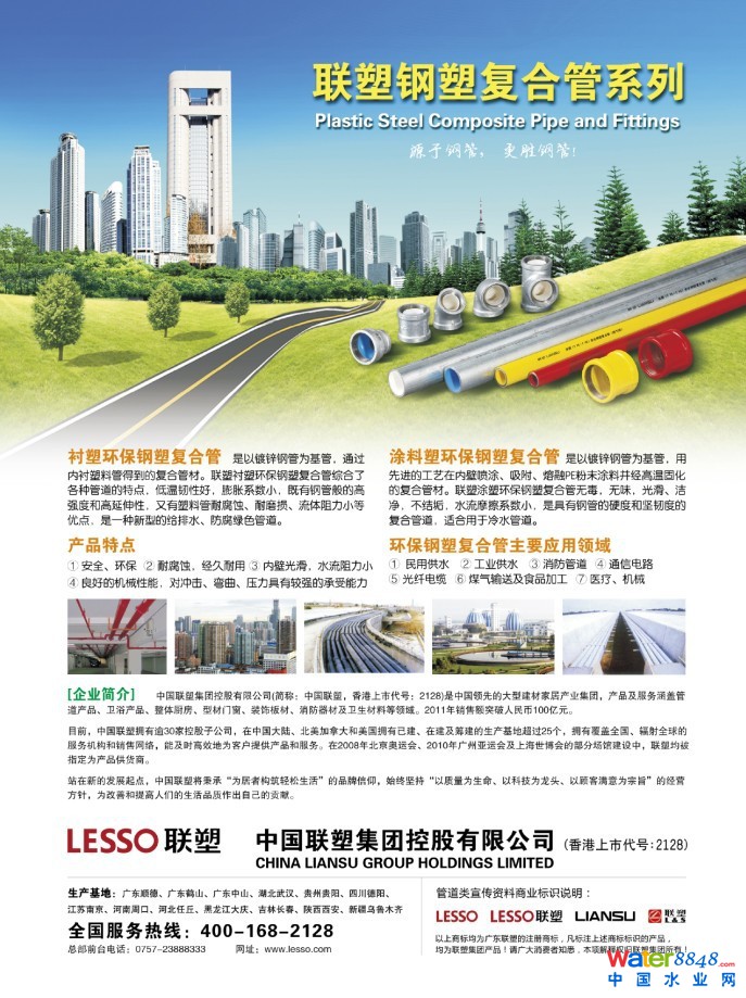 中國(guó)聯(lián)塑集團(tuán)控股有限公司(簡(jiǎn)稱:中國(guó)聯(lián)塑,香港上市代號(hào):2128)是中國(guó)領(lǐng)先的大型建材家居產(chǎn)業(yè)集團(tuán),產(chǎn)品及服務(wù)涵蓋管道產(chǎn)品、衛(wèi)浴產(chǎn)品、整體廚房、型材門(mén)窗、裝飾板材、消防器材及衛(wèi)生材料等領(lǐng)域。2011年銷(xiāo)售額突破100億元人民幣。