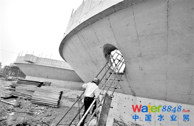 昨日,郭公莊水廠,機(jī)械加速澄清池正在施工。記者 薛珺 攝