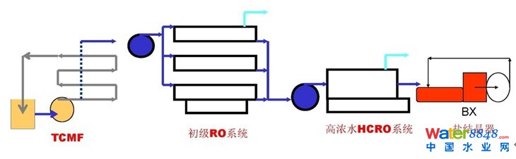當(dāng)蒸發(fā)結(jié)晶作為RO濃水零排放的最終手段之時(shí),提高系統(tǒng)回收率,降低最終濃水產(chǎn)生量(即蒸發(fā)水量)就成為降低零排放 |