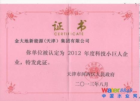 2013年8月,金大地榮獲“天津市科技小巨人企業(yè)”稱號(hào),這是金大地多年來始終堅(jiān)持科技創(chuàng)新的成果,證明了金大地雄厚的科技實(shí)力。
