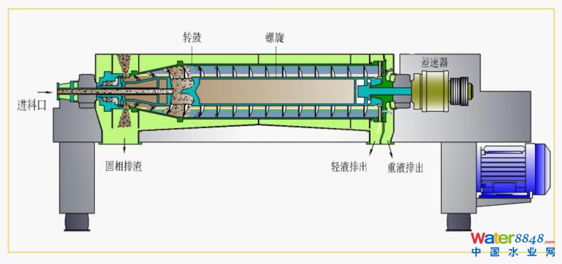 三相分離臥螺沉降離心機(jī)工作原理圖
