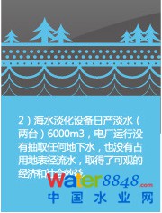 眾和海水淡化工程有限公司, 位于天津開發(fā)區(qū)西區(qū)。公司采用國際先進(jìn)技術(shù)和具有自主知識產(chǎn)權(quán)的專有技術(shù),專業(yè)從事海水淡化、苦咸水淡化等水處理項目的工程咨詢、設(shè)計、工程總包和裝備制造。主要業(yè)務(wù)包括:低溫多效海水淡化、反滲透海水淡化、電廠鍋爐補(bǔ)水、工業(yè)純水和超純水、中水回用和工業(yè)廢水處理等。