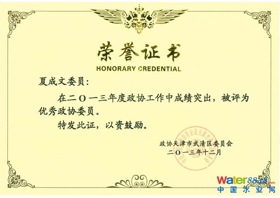 日前,我集團(tuán)董事長(zhǎng)夏成文同志被政協(xié)天津市武清區(qū)委員會(huì)評(píng)為2013年度“優(yōu)秀政協(xié)委員”!