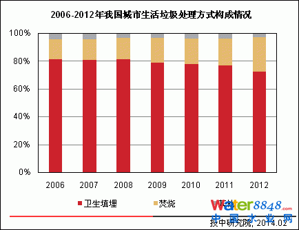 圖11 2006-2012年我國城市生活垃圾處理方式構成情況