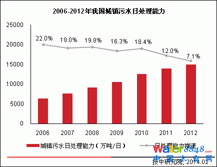圖6 2006-2012年我國城鎮(zhèn)污水日處理能力