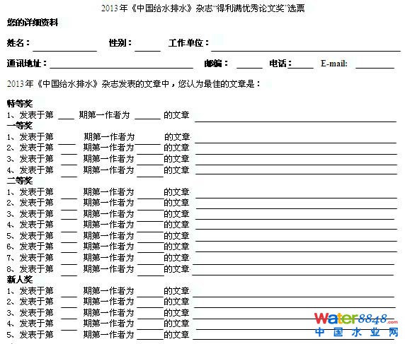 本次活動(dòng)由《中國給水排水》雜志社承辦,此選票可在www.watergasheat.com下載。