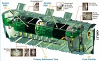 (2)預(yù)沉淀后污水流入生物轉(zhuǎn)盤區(qū)的第一生物區(qū),通過RBC膜片上附載的微生物降解污水中的部分BOD。固體通過底部的溝槽重新回到PST;處理后的污水經(jīng)提水裝置傳送到第二生物區(qū),在這里進(jìn)行深度處理。