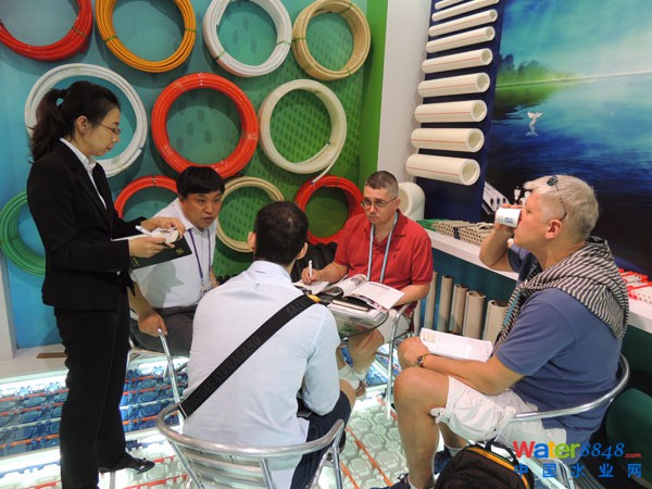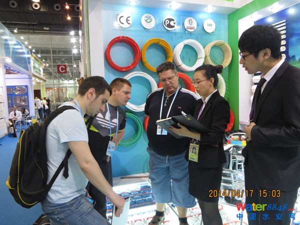 本屆廣交會,我公司主要展示了HDPE、PP-R、地暖和對接焊全系列管材管件,其中大口徑PE管和地暖管系列管材管件,備受外商關(guān)注。值得一提的是,我公司獨特的地暖發(fā)光地臺設(shè)計,吸引了眾多海外客商,贏得了廣泛的贊譽。 本次參展共接待和洽談外商200多位,主要來自澳大利亞、阿爾及利亞、俄羅斯、印度、菲律賓、中東等國家和地區(qū),南美地區(qū)客戶客戶也有明顯增加。其中來自澳大利亞、越南、俄羅斯、新加坡、菲律賓、印度等國家的老客戶紛紛來到展館參觀,通過面對面的交談,客戶對軍星有了進一步的認識,同我們的合作意向進一步加深,紛紛表示希望到我園區(qū)考察洽談進一步合作事宜。其中,更有越南客戶當(dāng)場簽單,合同金額達20000USD!