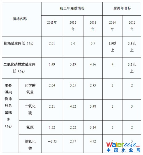 “十二五”節(jié)能減排約束性指標(biāo)前三年完成情況和后兩年目標(biāo)