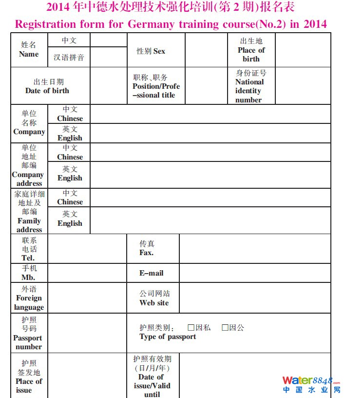2014年中德水處理技術(shù)強(qiáng)化培訓(xùn)(第2期)報(bào)名表