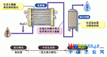 通過電解槽和催化劑槽的 2個(gè)階段的處理來處理難分解性物質(zhì)。