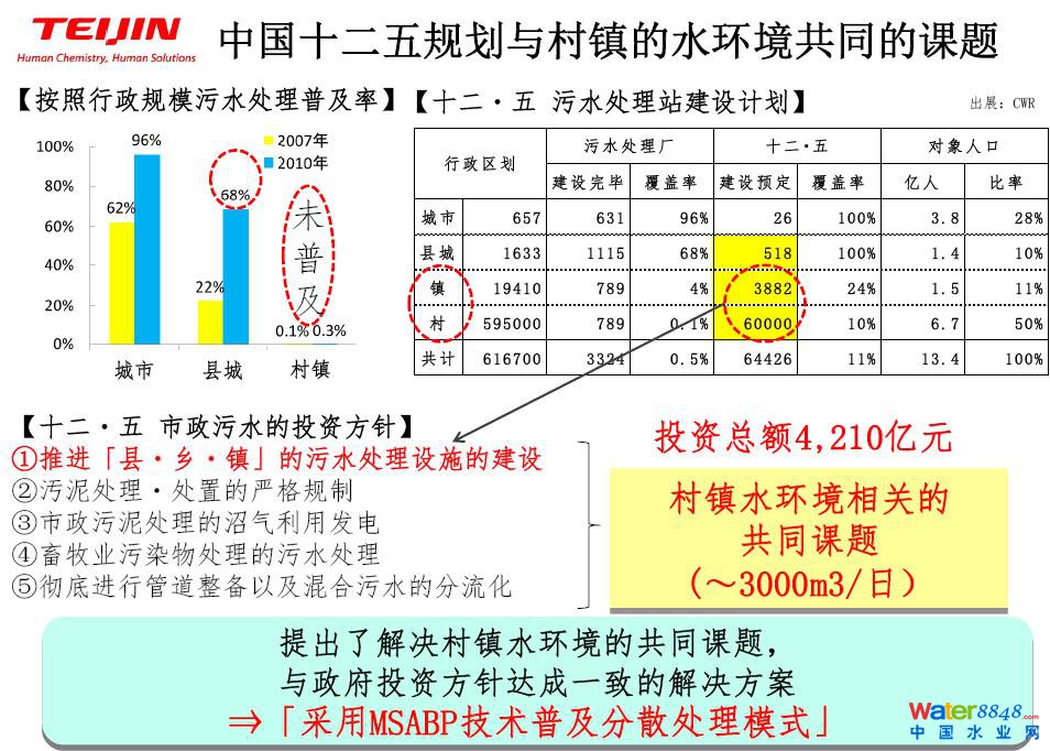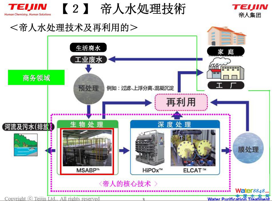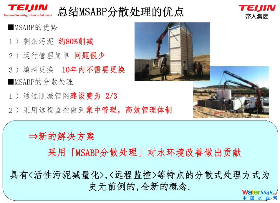 帝人(沈陽)環(huán)?萍加邢薰緦⒃谥袊(guó)國(guó)內(nèi)給客戶提供水處理相關(guān)的咨詢業(yè)務(wù)和綜合性解決方案,這些解決方案將采用先進(jìn)的具有減少污泥、縮短工期、節(jié)約管線工程費(fèi)用、運(yùn)行管理極其簡(jiǎn)單等諸多特點(diǎn)的多段式生物處理裝置-“MSABP”(*)等水處理裝置。