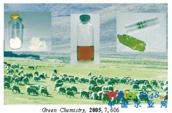 離子液體具有與傳統(tǒng)分子溶劑完全不同的結構特點,這決定了其具有很多獨特的溶解特性。一定結構的基于咪唑鹽的氯負離子離子液體具有強烈的破壞氫鍵的能力。纖維素、蠶絲纖維、羊毛纖維、殼聚糖、甲殼素等是大量存在于自然界的生物可再生大分子資源。充分利用這些資源來緩解對石油資源的需求壓力,這方面一直都是綠色化學、材料化學、催化化學領域研究的熱點。由于它們特殊、復雜的結構特點,不能溶于一般的普通分子溶劑,傳統(tǒng)的溶解加工過程中涉及到大量酸、無機鹽、有毒、昂貴溶劑的使用,這很大程度上制約了這些資源的利用。我們成功的為這些生物資源開發(fā)了一個基于離子液體為溶劑的簡單的、環(huán)境友好的加工平臺;诖似脚_,可以制備各種功能性復合生物降解、保健纖維、膜材料等。 More