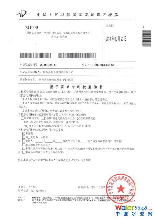 核心提示:滾筒式污泥無害化設(shè)備發(fā)明專利已經(jīng)授權(quán)