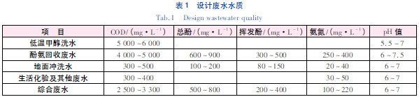 內(nèi)蒙古某煤制尿素工程廢水主要包括低溫甲醇洗水、酚氨回收廢水、地面沖洗水、生活化驗(yàn)及其他廢水,綜合廢水量為360 m3/h,設(shè)計(jì)水質(zhì)見表1。