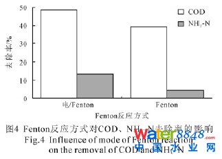 2.3 電/Fenton 與Fenton 方式對COD、NH3-N 去除率的影響