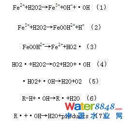 由圖4 可以看出,相比較而言,無論對COD 還是對NH3-N 的去除,電/Fenton 都具有明顯的優(yōu)勢。一般認(rèn)為Fenton 反應(yīng)的機(jī)理[7-8]主要如下: