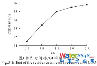 2.2 廢水停留時(shí)間對微電解的影響