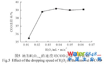 2.4 滴加H2O2(aq)的速度(量)對COD去除率的影響