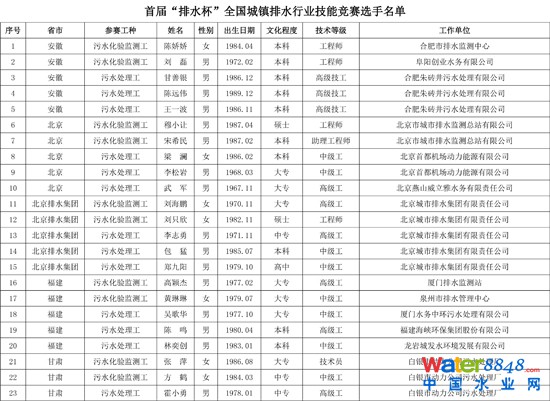 2014年中國技能大賽——首屆“排水杯”全國城鎮(zhèn)排水行業(yè)職業(yè)技能競賽決賽選手公示 |