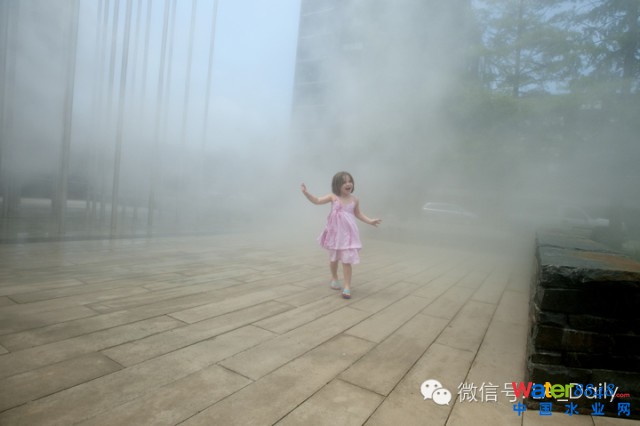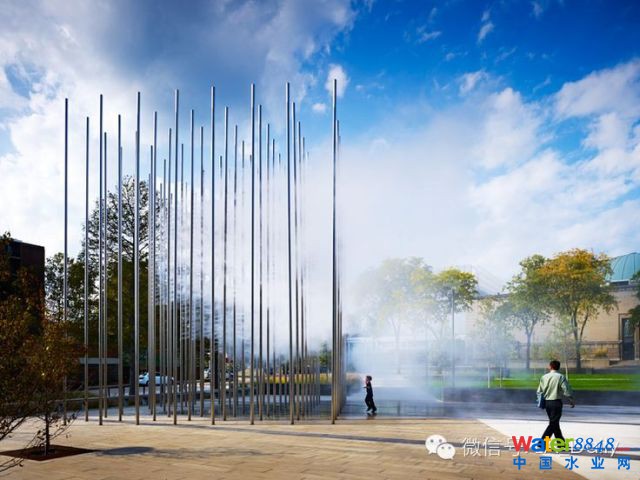 由30英尺高不銹鋼柱列陣組成的“森林”和鋼管高壓噴出水霧行車的誰起云, 控制噴霧時(shí)間,形成時(shí)隱時(shí)現(xiàn)的“懸浮云”,有時(shí)為“流云”。實(shí)現(xiàn)自然與藝術(shù)的結(jié)合。