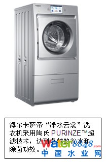 中國上海,2014年10月27日——通過與陶氏化學(xué)公司(紐交所代碼:DOW)旗下水處理及過程解決方案業(yè)務(wù)部的聯(lián)合開發(fā),海爾集團(tuán)成功運(yùn)用陶氏超濾(UF)技術(shù)實(shí)現(xiàn)了首款卡薩帝“凈水云裳”洗衣機(jī)的商業(yè)化應(yīng)用。這款洗衣機(jī)采用了全新的陶氏PURINZETM 超濾膜進(jìn)行設(shè)計制造,省水超過30%,除菌效果更高達(dá)99%1,同時還能有效改善水質(zhì),,提升洗滌效果。