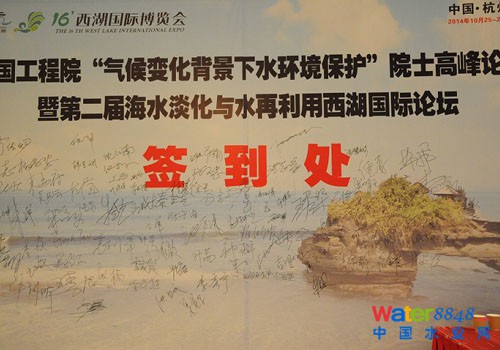 中國工程院“氣候變化背景下水環(huán)境保護(hù)”院士高峰論壇暨第二屆海水淡化與水再利用西湖國際論壇簽到墻