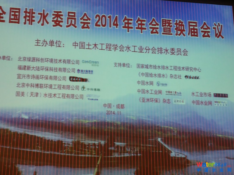 2014111日,全國排水委員會2014年會暨第六屆委員換屆會議成功在成都召開,此次會議由中國土木工程學(xué)會水工業(yè)分會排水委員會主辦 ;北京綠源科創(chuàng)環(huán)境技術(shù)有限公司 、福建新大陸環(huán)?萍加邢薰  、宜興市詩畫環(huán)保有限公司  、 北京中科博聯(lián)環(huán)境工程有限公司、 國美(天津)水技術(shù)工程有限公司、中國給水排水雜志社等單位給予了鼎力協(xié)辦;國家城市給水排水工程技術(shù)研究中心 、中國給水排水雜志社、中國水業(yè)網(wǎng)、亞洲環(huán)保雜志、水工業(yè)市場、中國水網(wǎng)、中國水工業(yè)網(wǎng)等單位也給予了大力支持。